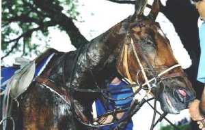 A horse can loose 10 liters of sweat playing a chukker in a hot environment.The effects in a horse that plays high goal polo in adverse environment conditions (high temperature,